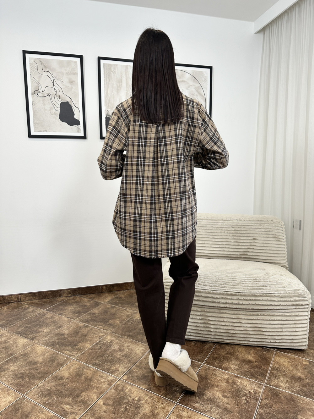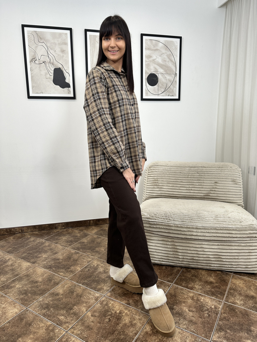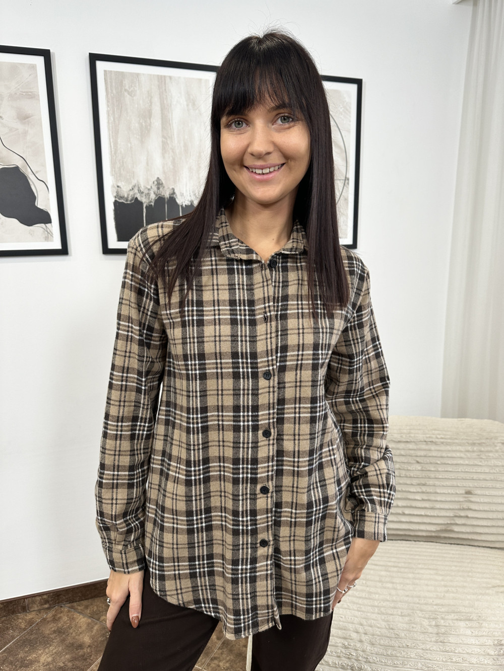 KOSZULA KELLY W KRATĘ BRĄZOWO-BEŻOWA