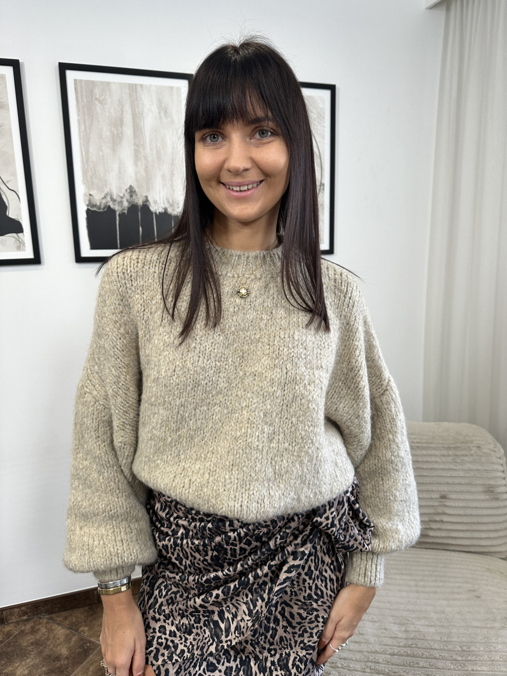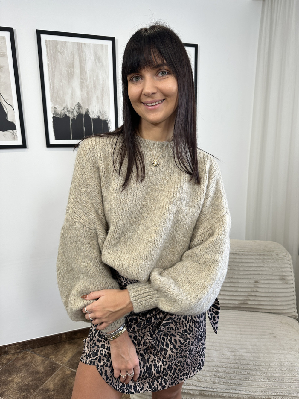 Sweterek o klasycznym kroju, milutki w dotyku. Idealnie prezentuje się z jeansami lub spódniczkami. Występuje w kilku kolorach.