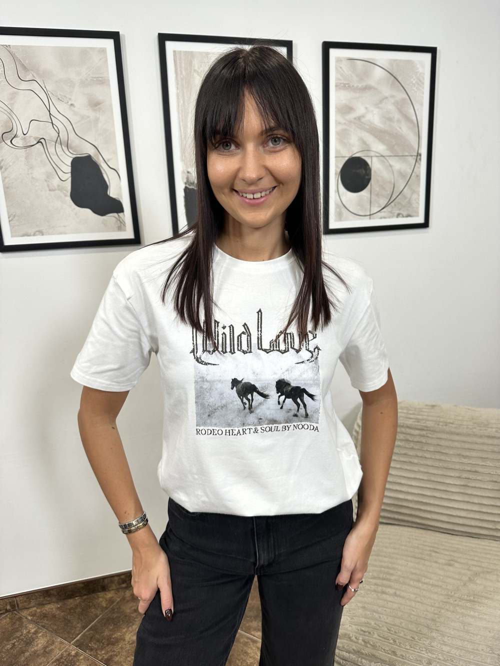 T-shirt z modnym nadrukiem to baza do wielu stylizacji. Wykonany z najwyższej jakości bawełny, zapewnia wygodę noszenia przez cały dzień. Produkt polski.