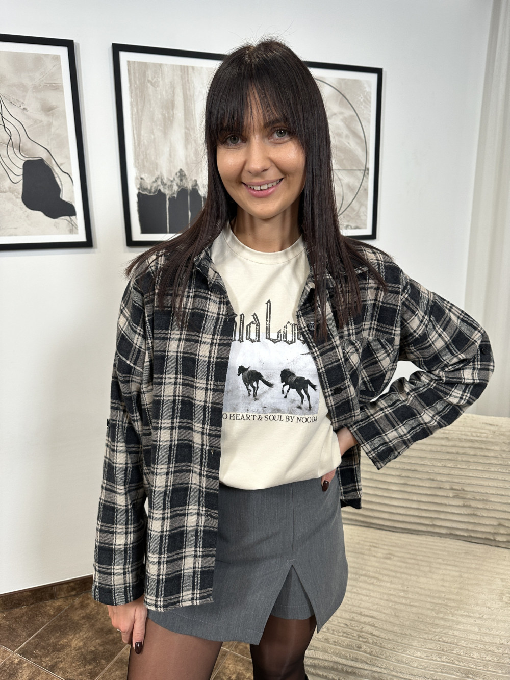 T-shirt z modnym nadrukiem to baza do wielu stylizacji. Wykonany z najwyższej jakości bawełny, zapewnia wygodę noszenia przez cały dzień. Produkt polski.