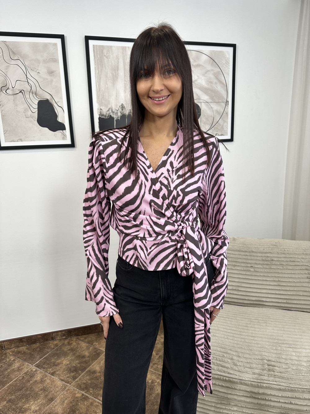 BLUZKA LIVJA Z WIĄZANIEM RÓŻOWA ZEBRA