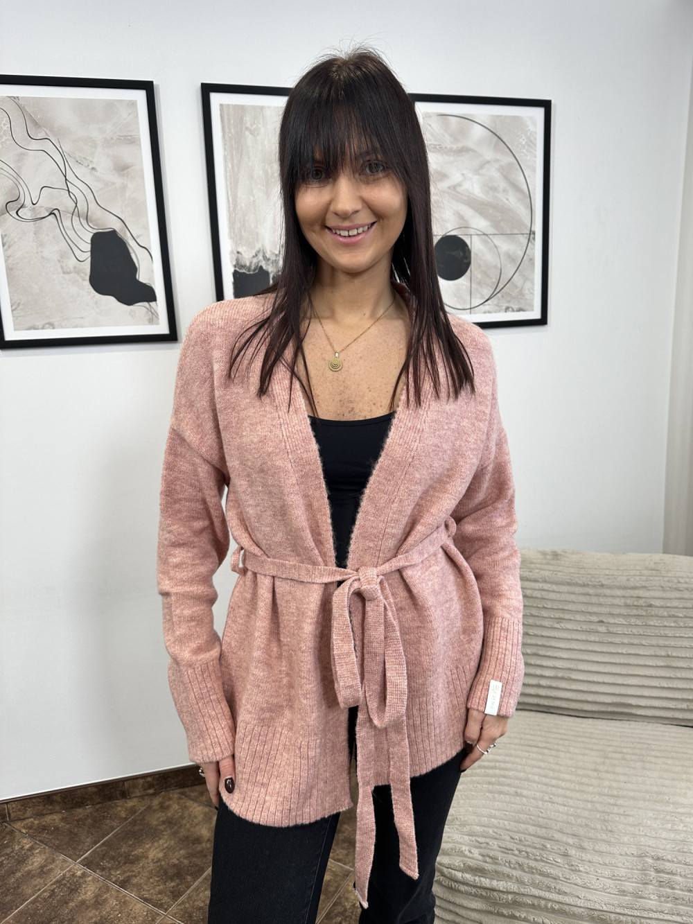 Stylowy i niezwykle wygodny kardigan z paskiem do związania to idealny wybór na chłodniejsze dni. Model o dłuższym kroju pięknie wydłuża sylwetkę i świetnie komponuje się zarówno z casualowymi, jak i bardziej eleganckimi stylizacjami. Występuje w dwóch kolorach. Produkt polski.